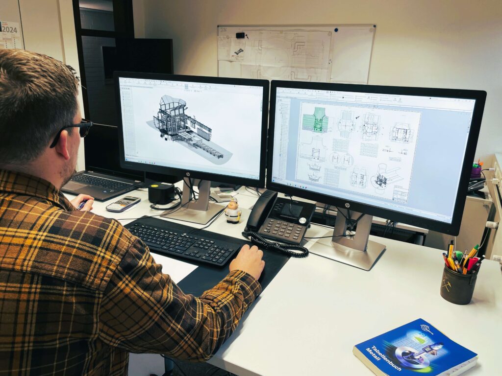 Unsere Konstruktionsabteilung plant Anlagenlayouts, Teufsysteme und Sonderkonstruktionen für Schachtbauvorhaben sowie Umbau- und Sanierungsprojekte.
