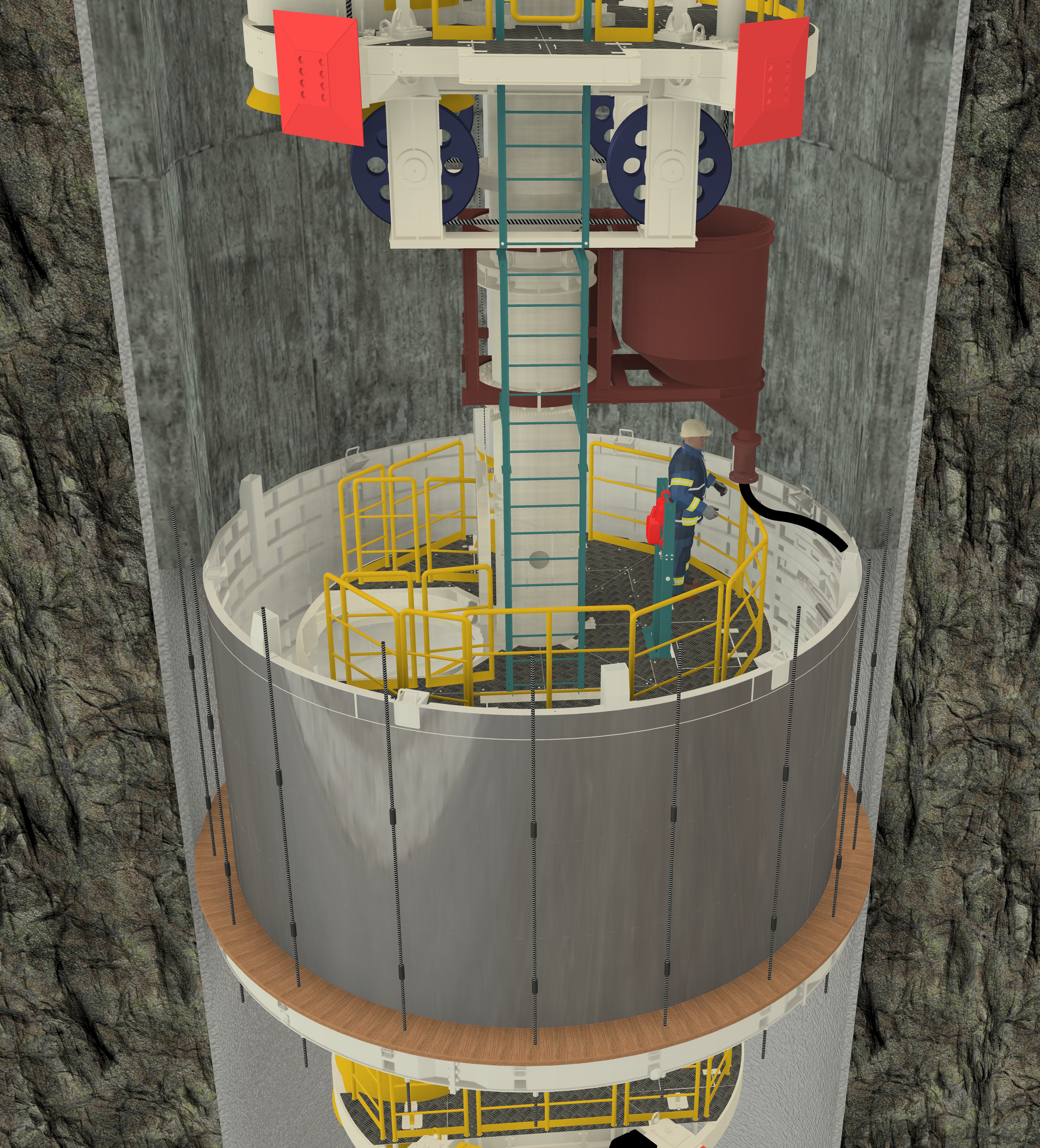 Unsere Maschinentechnik entwickelt Sondermaschinen für das Schachtabteufen und fördertechnische Anlagen für Bergwerksschächte.